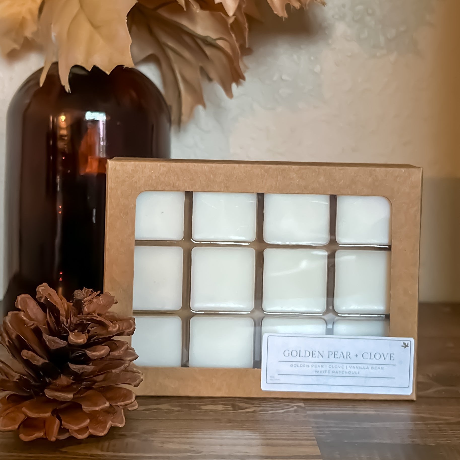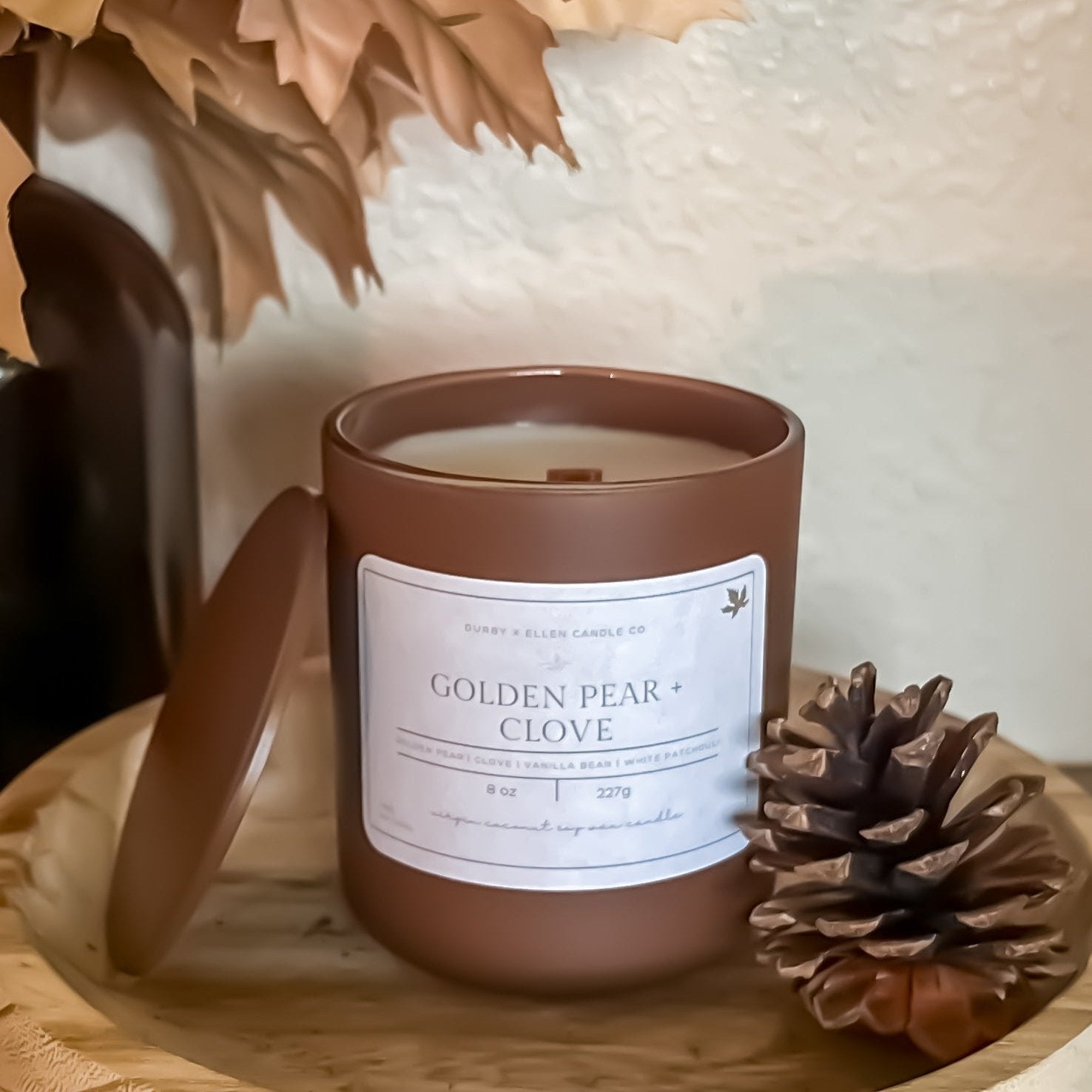 Experience the cozy essence of Fall with Golden Pear + Clove. Juicy golden pear and aromatic clove bud combine in a sweet dance with notes of appleskin, maple leaf, and brown sugar, grounded by applewood, vanilla bean, and white patchouli. Create an irresistible aroma that will warm your home and your heart.